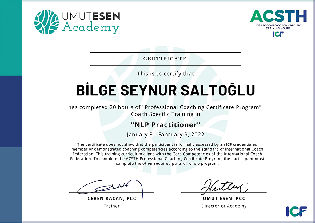 Koçluk yaklaşımında; etik ilkelere bağlılık, yargısız bir alan yaratmak ve bireyin kendi potansiyeline duyduğu güveni güçlendirmek esastır. Bu doğrultuda tüm çalışmalarını International Coaching Federation (ICF) etik çerçevesi ve değerleri ile uyumlu şekilde yürütmektedir.